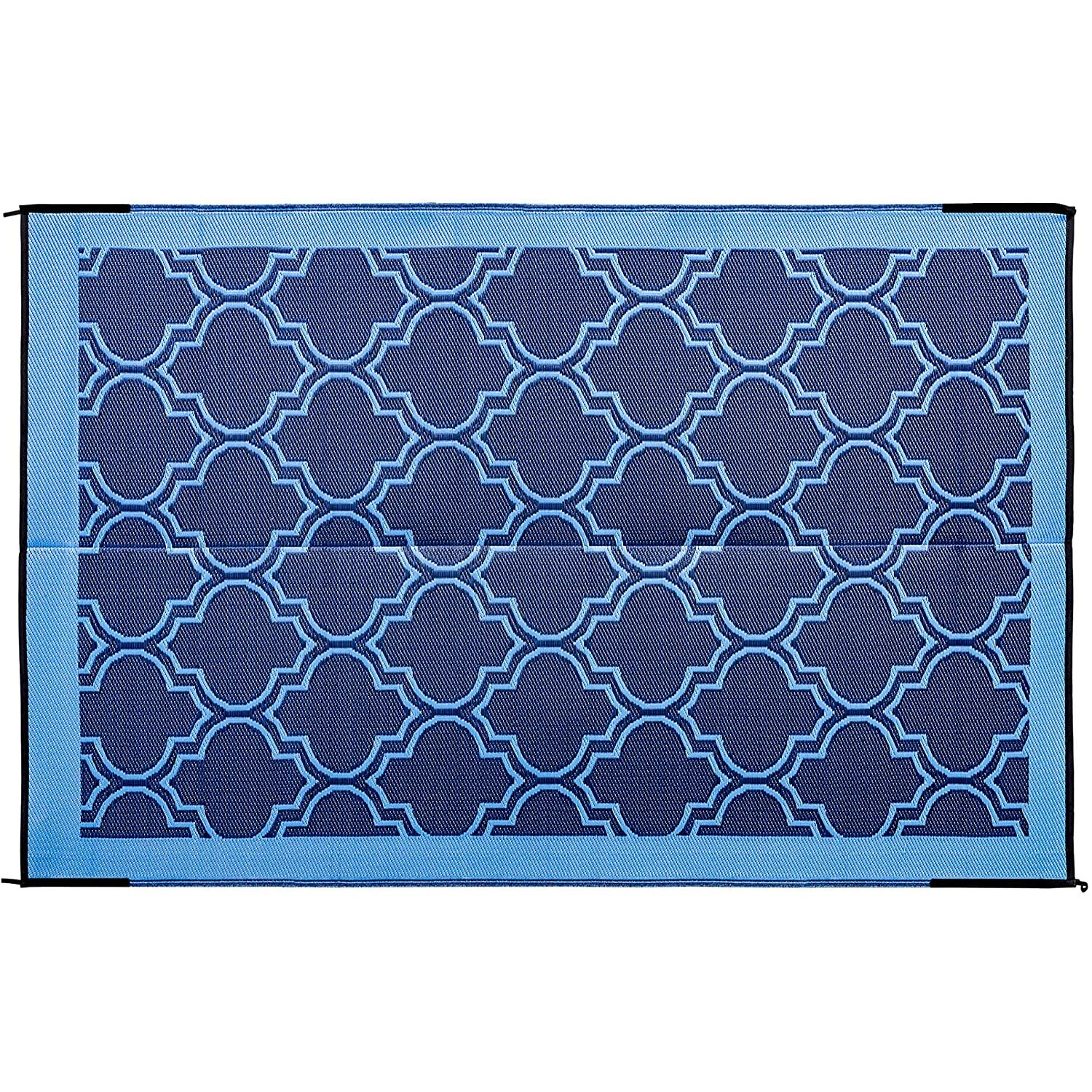 Camco Large Reversible Outdoor Patio Mat - Easy to Clean, Perfect for Picnics, Cookouts, Camping, and The Beach (6' x 9', Lattice Blue Design) (42876)