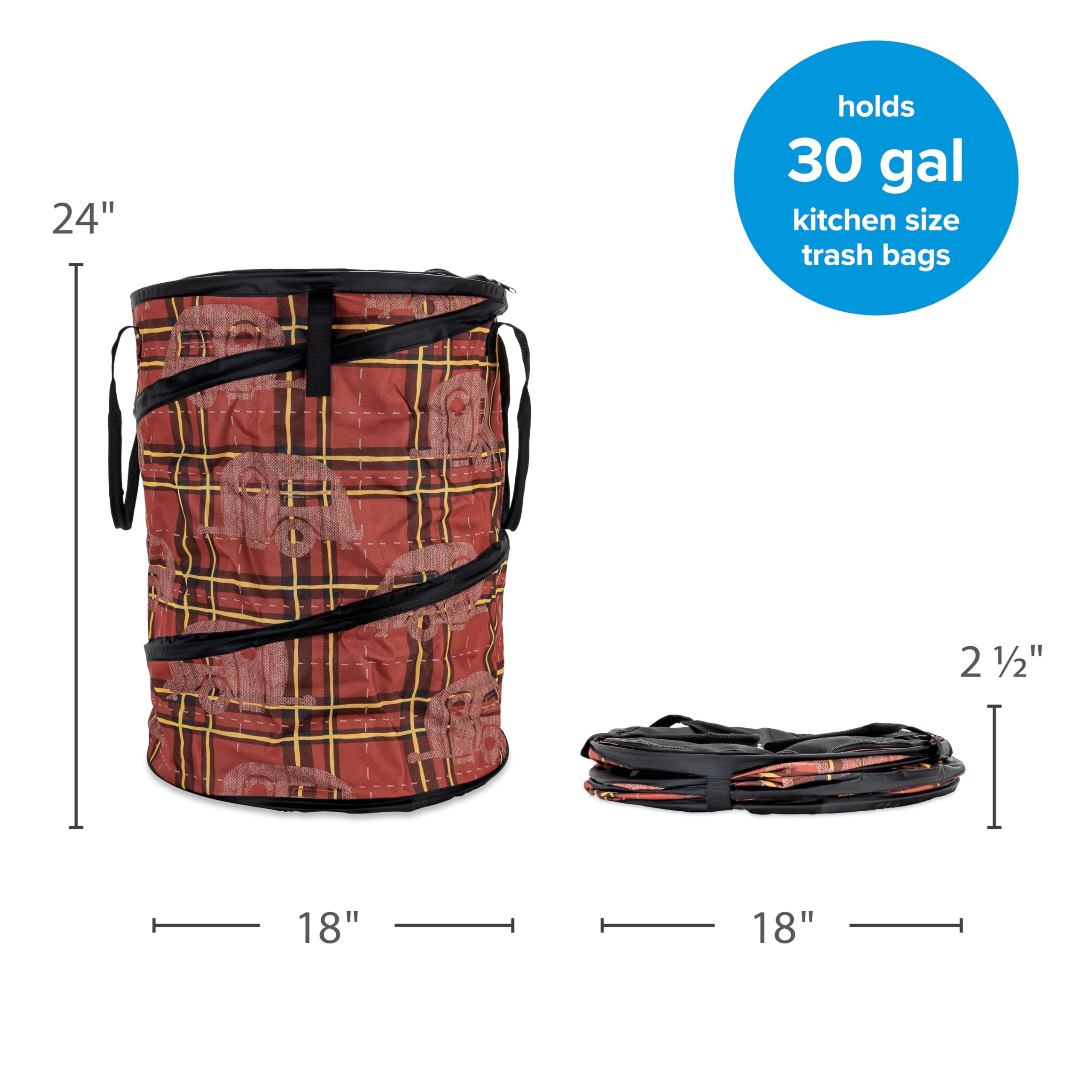 Camco Pop-Up Utility Container - Use as Collapsible Trash Can When Camping - Holds 30-Gallon Kitchen-Size Trash Bags - 2-Ft Tall & Collapses for RV Storage and Organization (53489)—