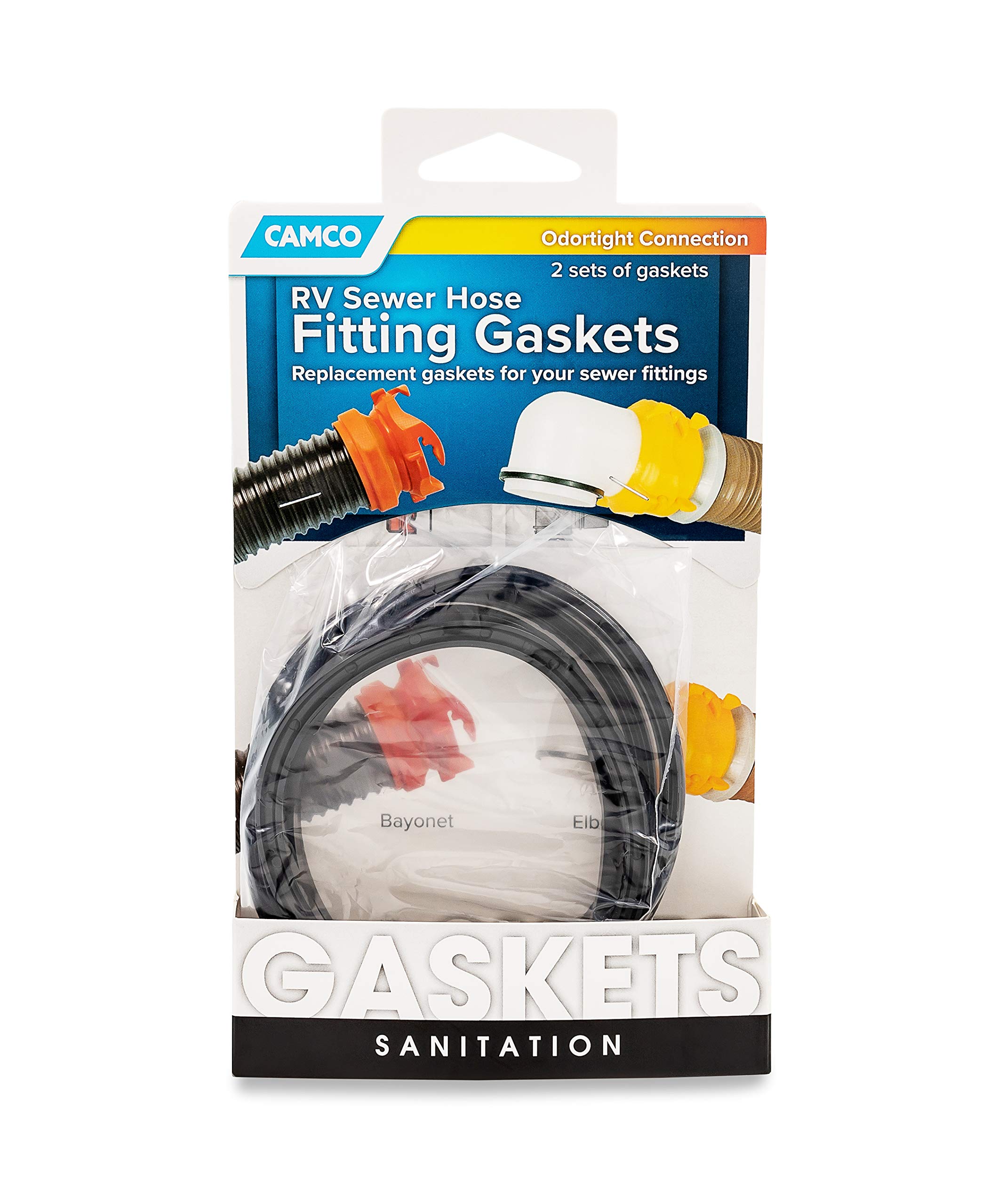 Camco Sewer Hose Replacement Gasket - Replacement Gaskets for RV Sewer Fittings to Ensure an Odor Tight Seal | Two Bayonet & Two 4-in-1 Gaskets - 4 Pack (39834) , Black—